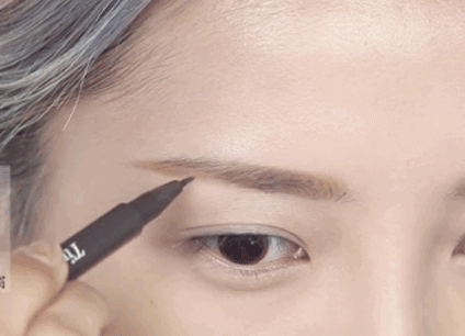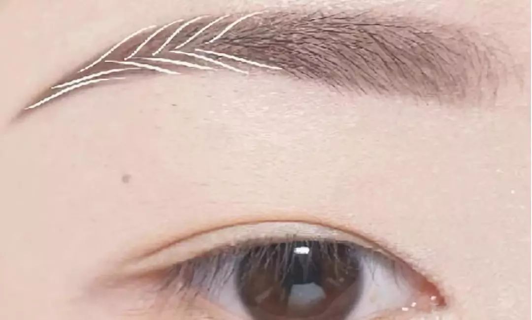 step3:想要效果更加自然的崽,可以再用液体眉笔沿着毛流方向画几条交错排列的“眉毛”,这里注意眉尾的线条不要画得过于整齐哦~