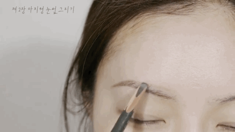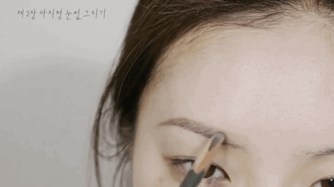 step2:用眉笔或眉粉从眉中开始向眉尾填充,注意要逐渐收缩眉尾,并且颜色不要太深。