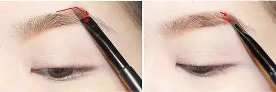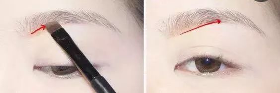step2:用眉刷在眉峰处细细勾勒出一个转角,然后顺着毛流向下填充眉尾。