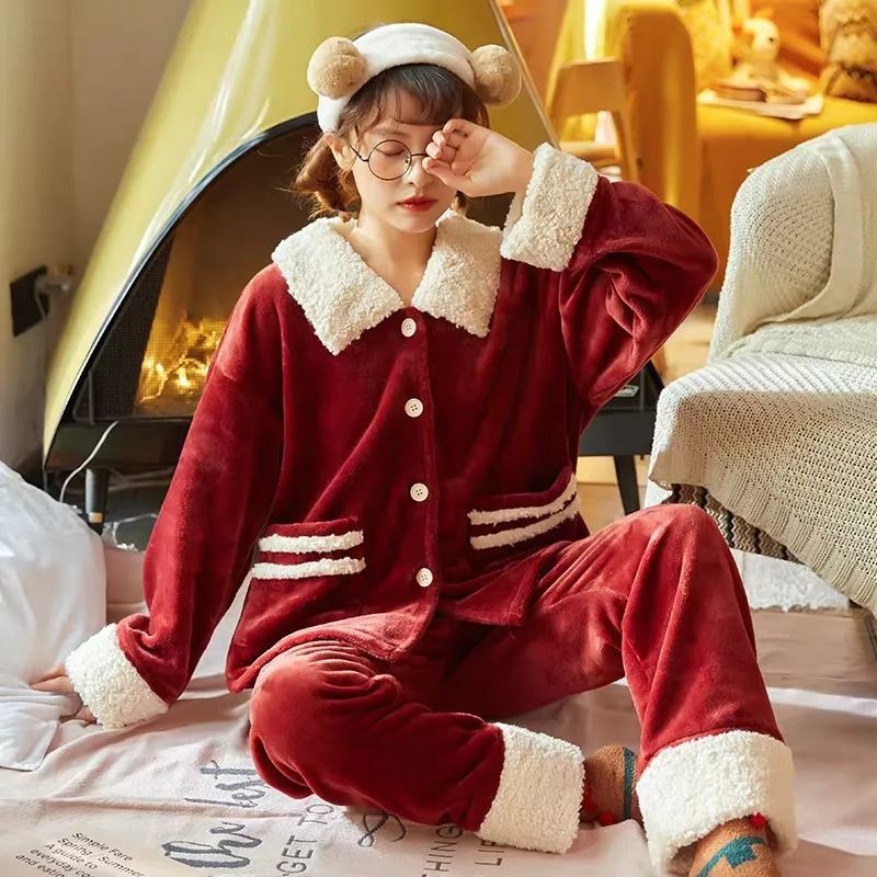 珊瑚绒红色法兰绒冬天家居服 $ezRZYzkzTPe$ | |