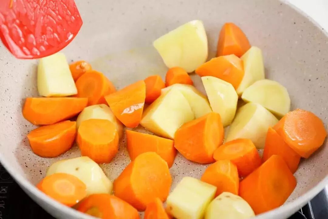 1、土豆萝卜先炒香再加入一起焖口感更好。