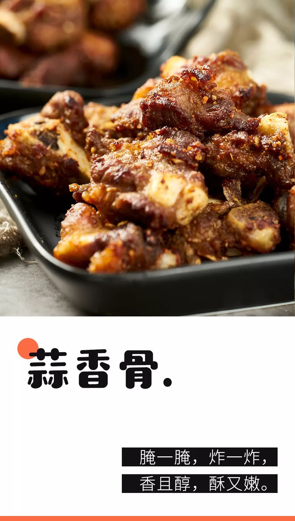 蒜香骨,简单来讲就是将腌制入味的排骨炸至金黄、外酥里嫩。