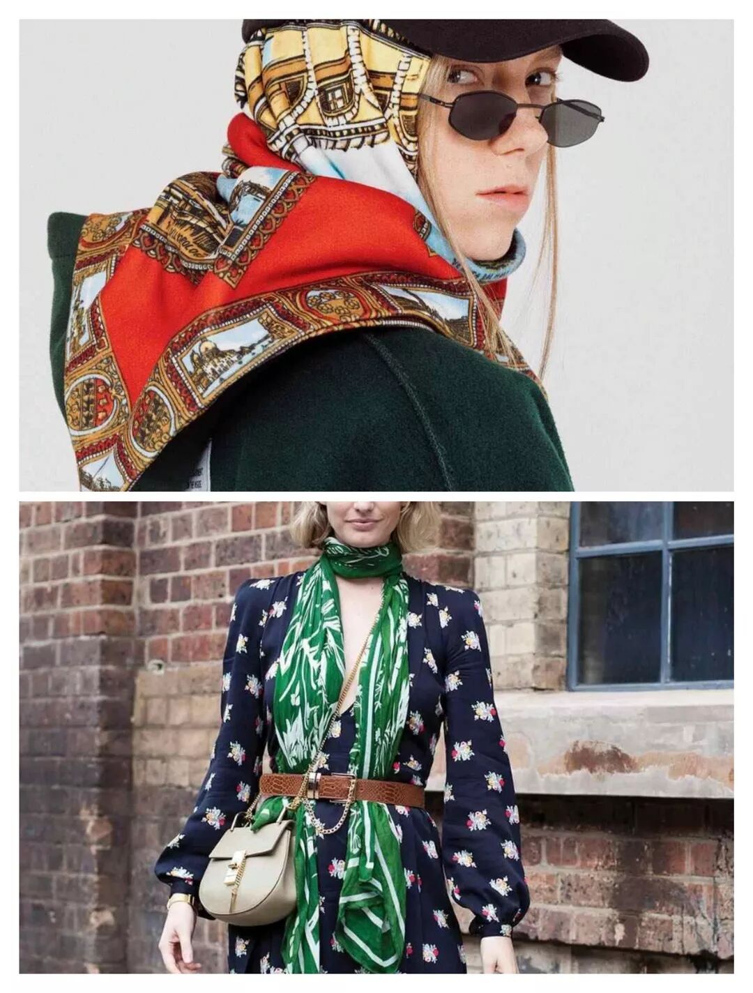 丝巾不仅是夏季的专利,在冬季也是时髦利器,除了基础保暖防风,还可以系在包包和帽子上哦。
