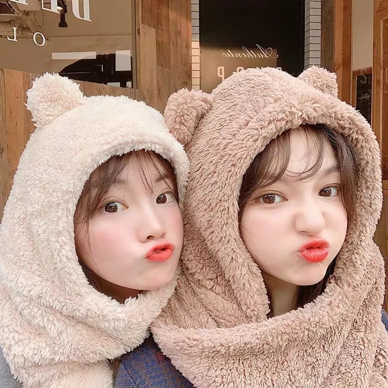 小熊耳朵围巾帽子一体