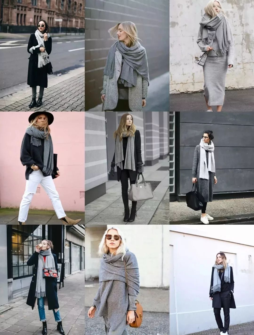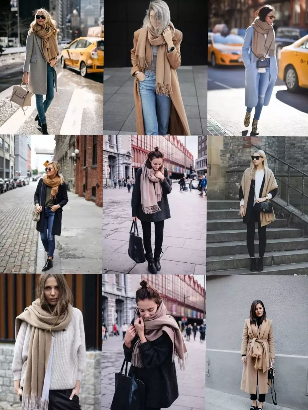 没有太多元素和华丽颜色的基础款衣服,搭配一条纯色的围巾,一切回归朴素,才发现原来黑白灰驼色也可以被玩出高级感。