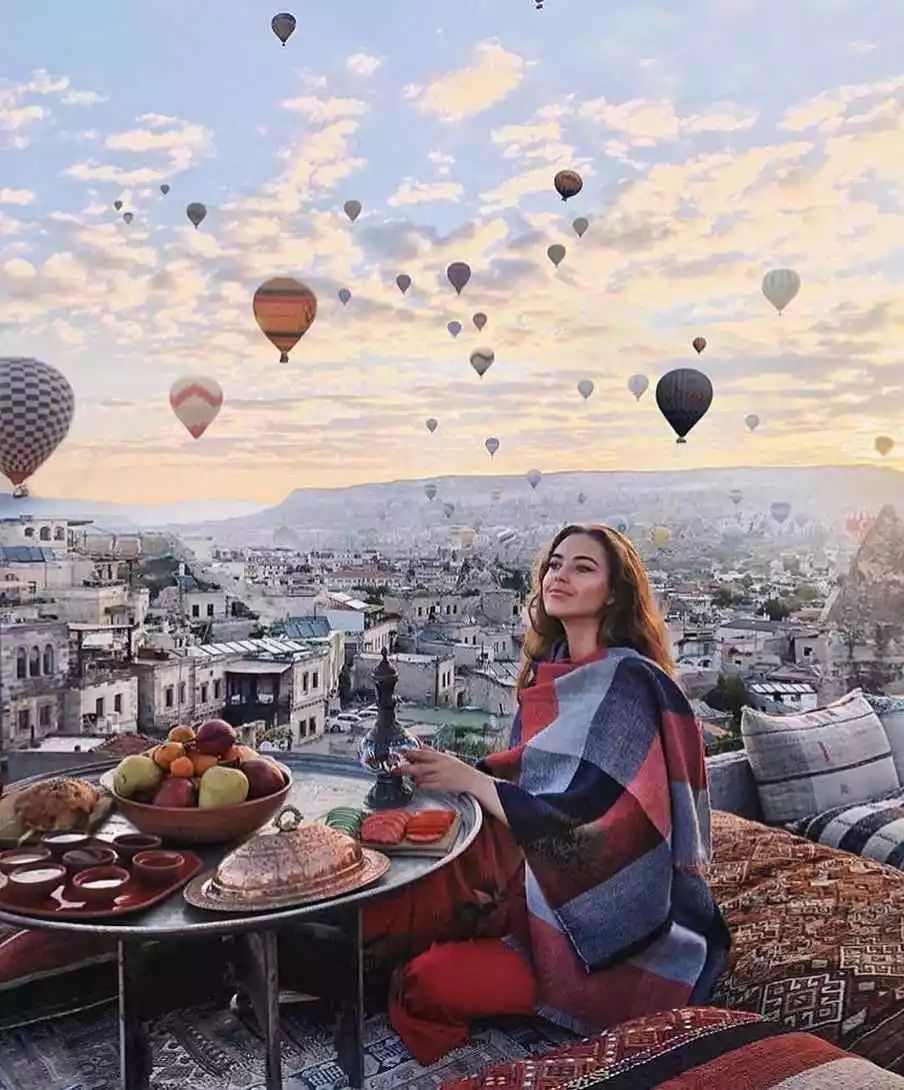 4、风儿太大脑壳冻?试着把围巾的一边搭在头上,创造出围巾一体帽,是不是还有种异国风情feel !