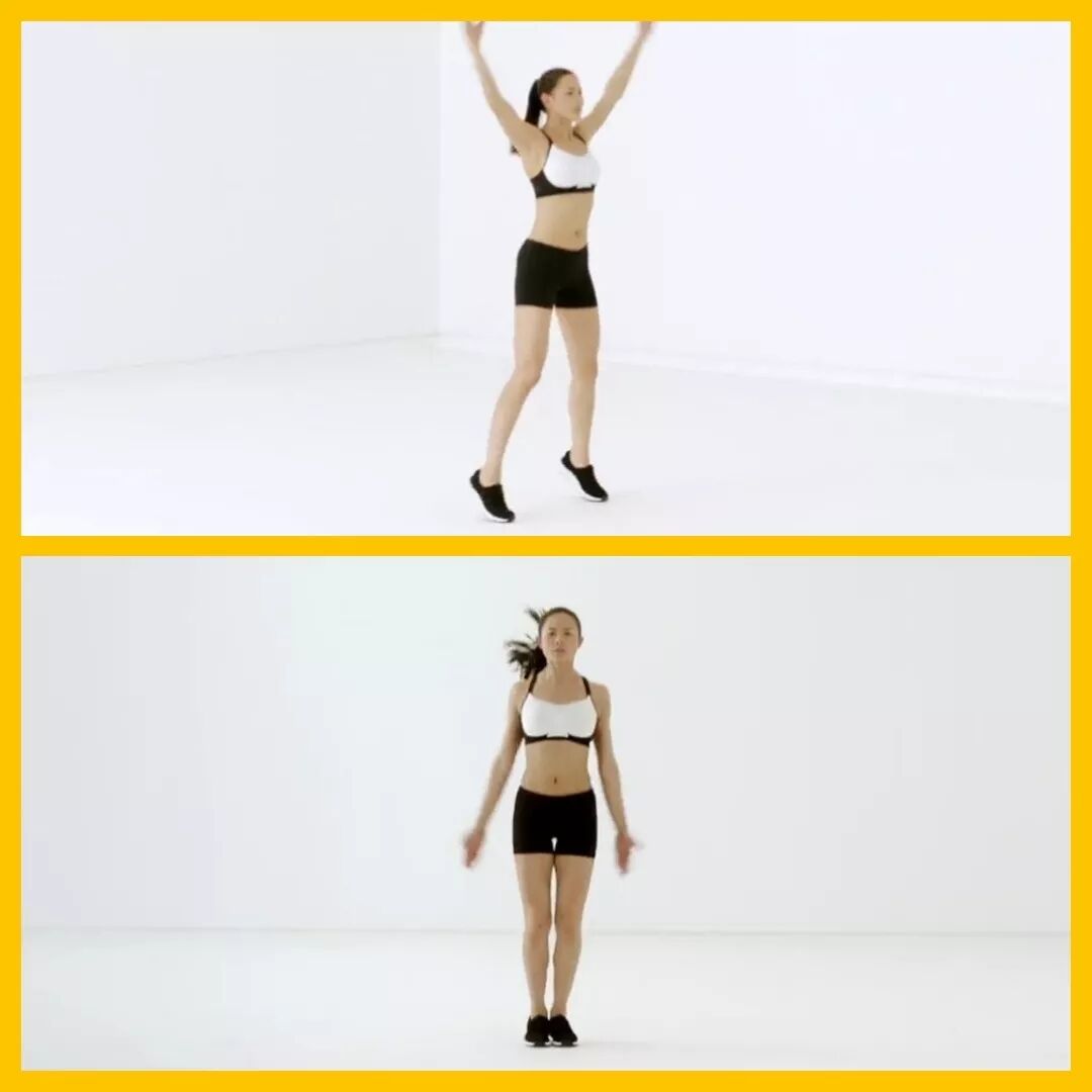 要点:快速摆臂带动身体跳跃,别看它很像广播体操的动作,开合跳能让全身肌肉在短时间活跃燃烧起来~