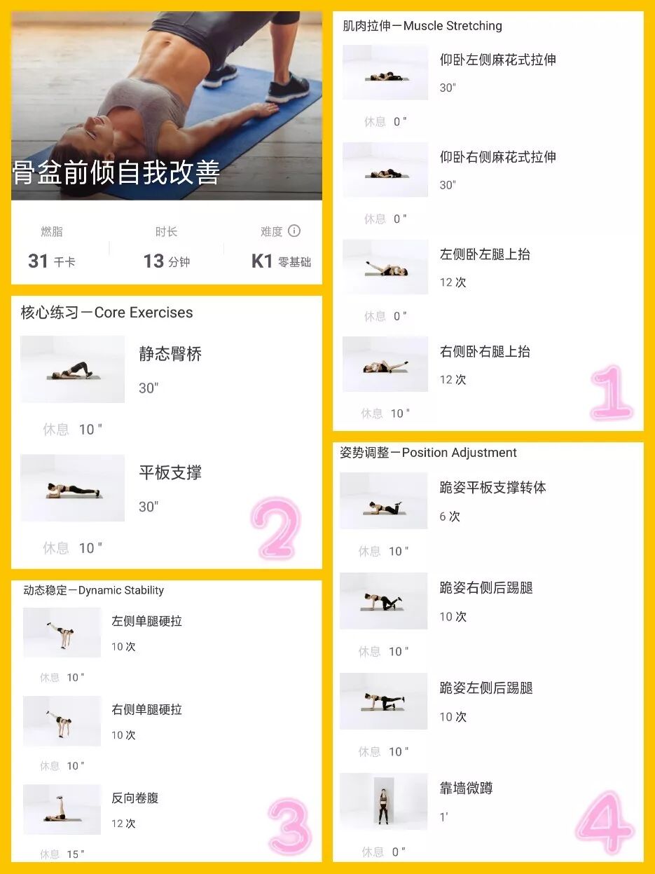 其他动作可以参考keep里面的骨盆前倾自我改善!