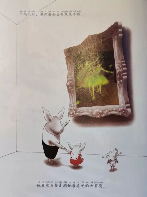 她出门前会把衣柜里所有的衣服都拿出来试穿一遍,直到挑到自己喜欢的。晴天妈妈会带她去海边,她会把自己晒成一条大热狗;而下雨天,她则会去参观博物馆。她喜欢直直走到德加的 《芭蕾排演》面前,那是她最喜欢的一幅画,她幻想自己有一天也能成为一名芭蕾舞演员。