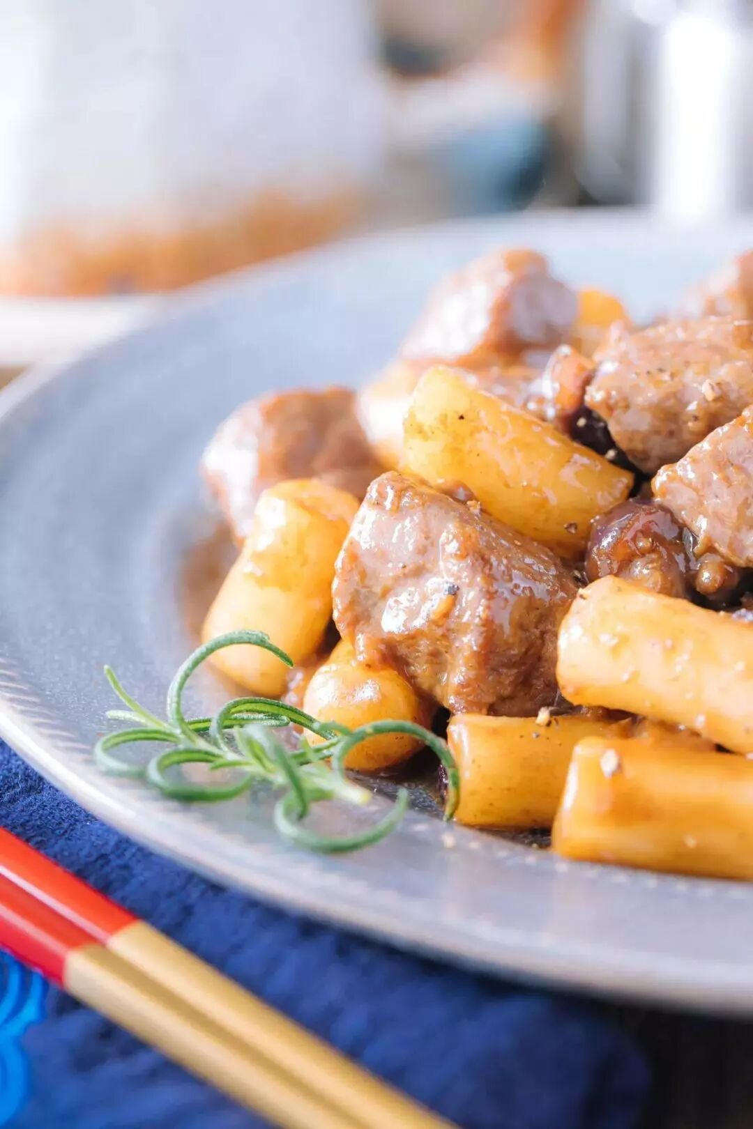 要说适合过年的菜,其实有很多角度,而为了让这道菜更有新意,又足够快手,我选择让年糕和牛肉组一对CP。没有复杂刀工、调味和炖煮,基本就是按顺序把食材翻炒出锅,最适合没有什么烹饪经验的小伙伴,在过年时为家人露一手了。