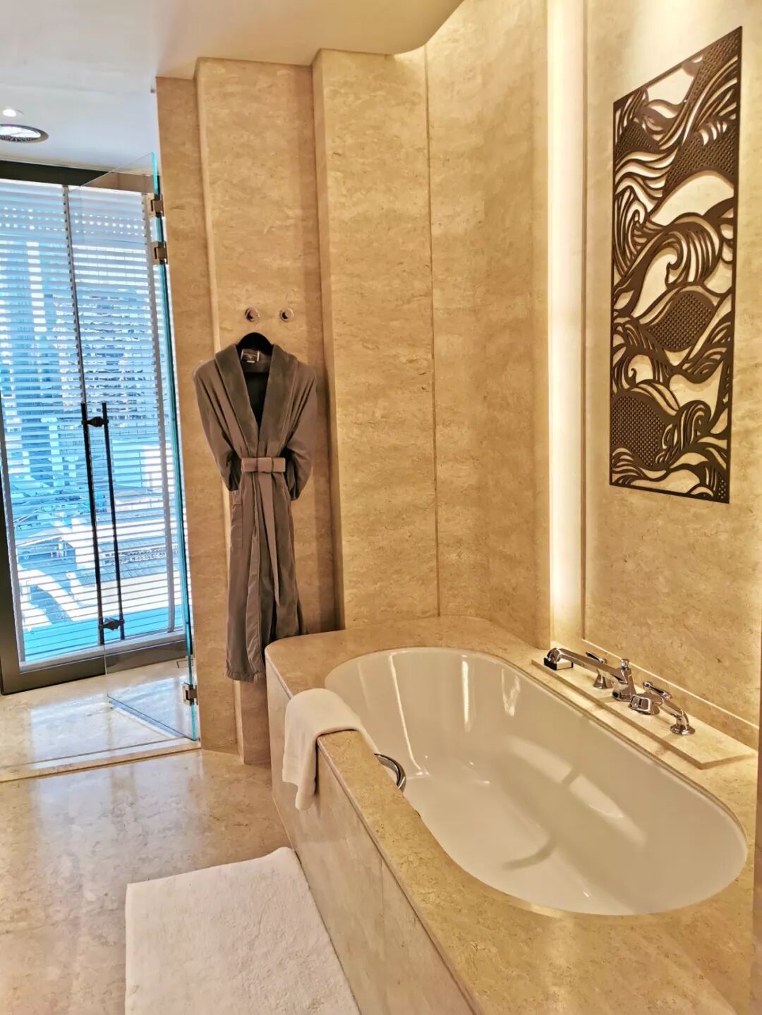 华尔道夫还没进门就感觉是国际统一标准的五星级酒店,设计简约大方,处处都是grandy的感觉,lobby都比别人大几号。房间配色是简单的米白色,看起来挺温馨的。但可能是从rosewood离开,华尔道夫给我的感觉就像一个适合出差的商务酒店。