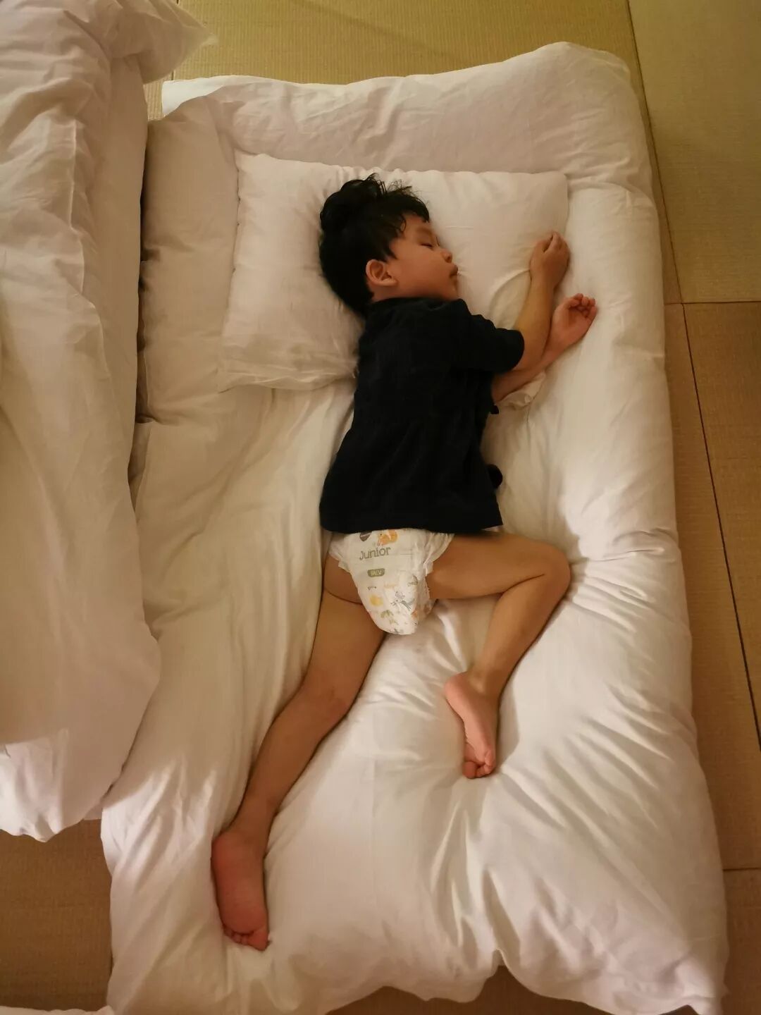 (床太小了,我只能等他睡着了搬到地上,好在是tatami睡起来也不累,我猜的)