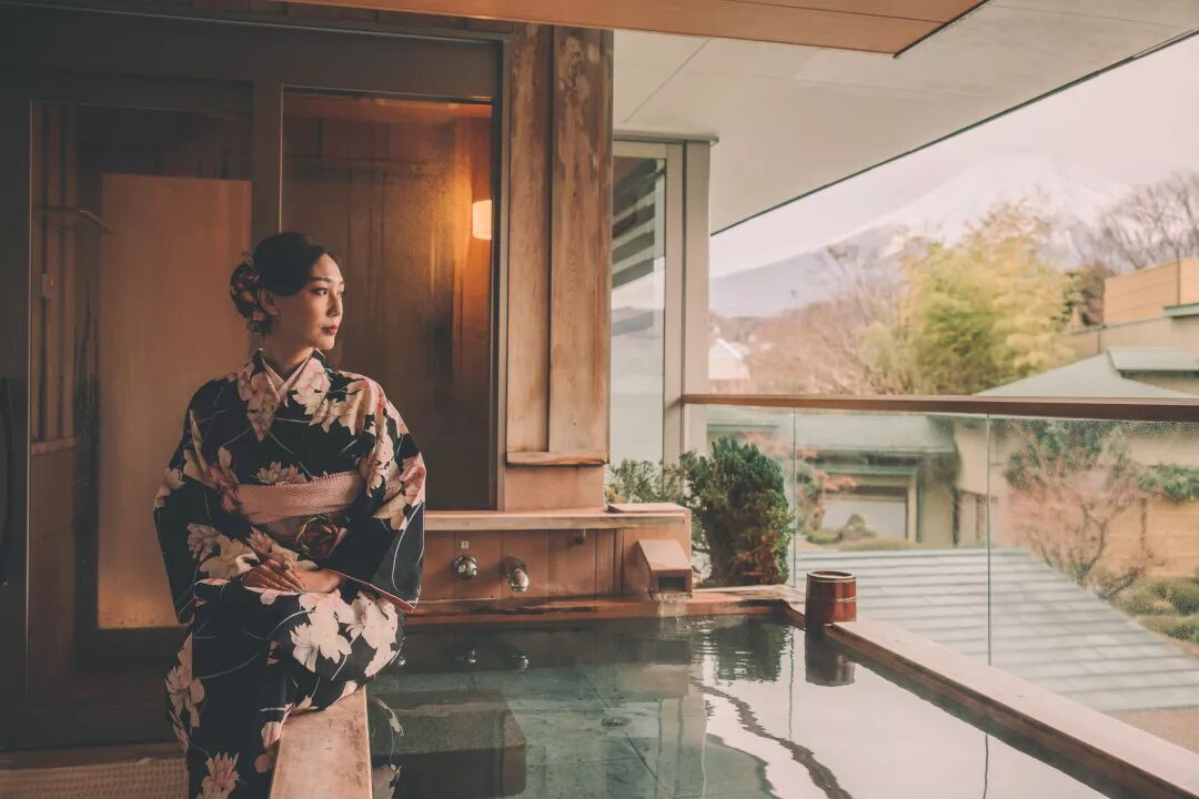 私汤就在阳台,天气好的时候可以一边泡汤一边看富士山,真的非常放松。