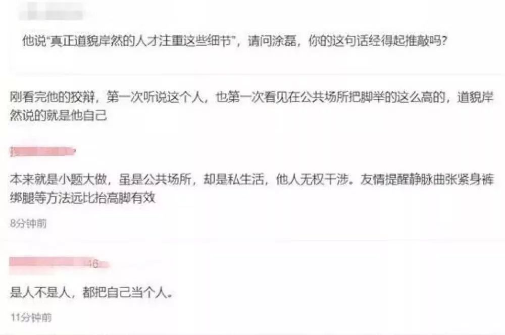 涂磊本人,也迅速在微博发布了一篇道歉长文,将脚蹬机舱,归因为静脉曲张。