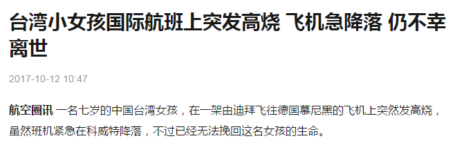 乘坐航班的7岁女孩,突发高烧,即使班机之后紧急降落,也不幸离世。