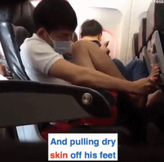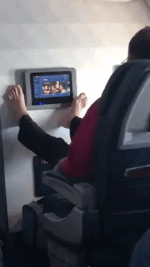 在这张一度传遍各大网站的动图里,乘坐飞机的人,直接用自己的脚,滑动前方的显示屏!