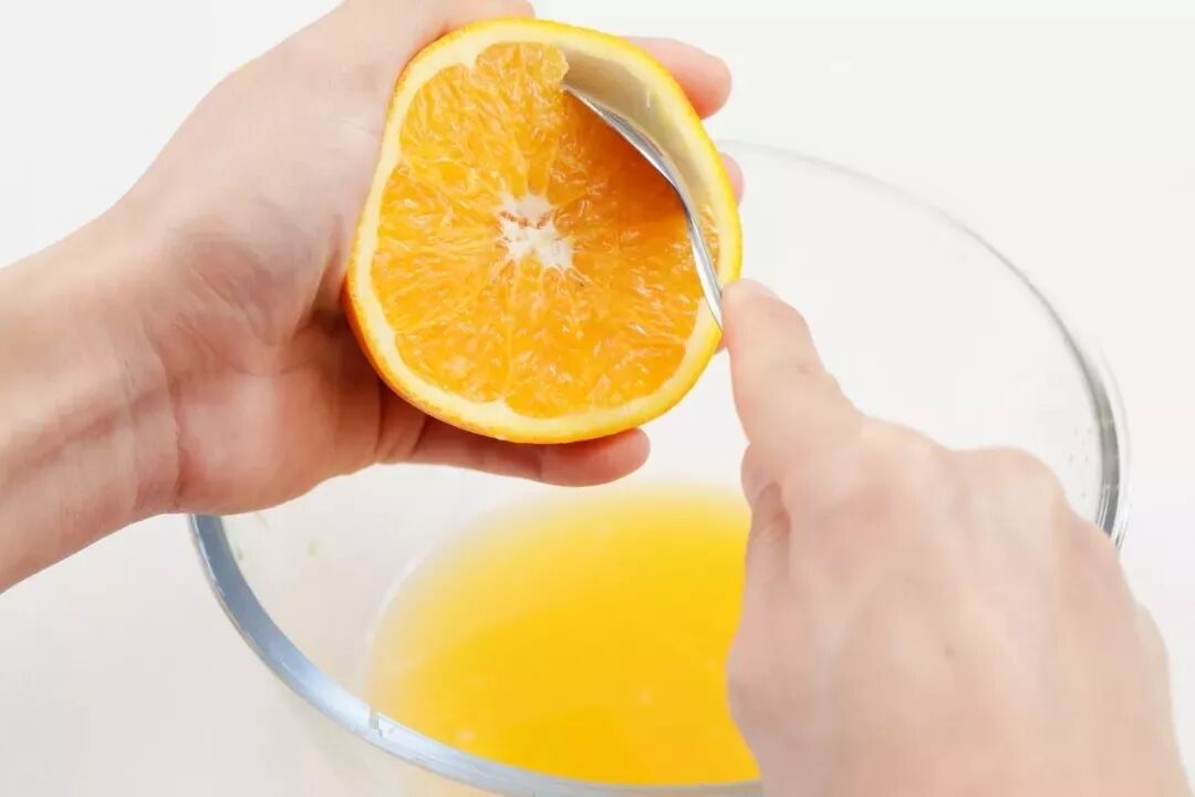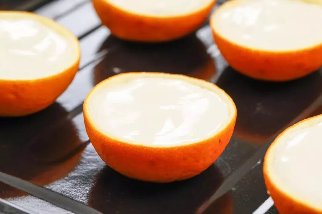 如果你掏果肉时,不小心把橙皮刮伤,果汁就会浸入橙皮中,导致橙皮碗含水量过大,所以要尽量避免这种情况。另外掏空的橙皮碗可以用厨房纸吸掉多余水分,或者晾干一下。这样蛋糕底部就不容易湿润了。