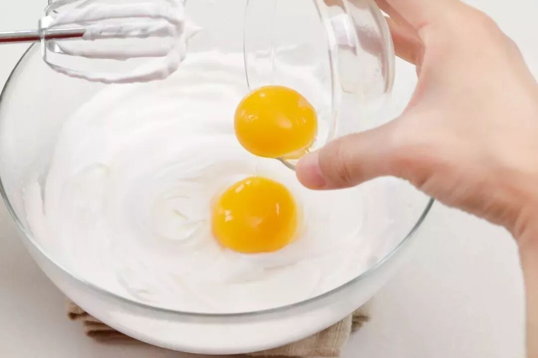 7、接着加入2颗蛋黄。
