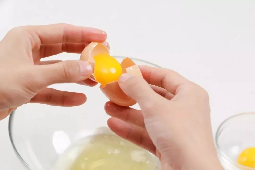 4、然后将两个鸡蛋分离,注意不要弄破蛋黄,如果蛋黄混入了蛋白,蛋白就难以打发了。