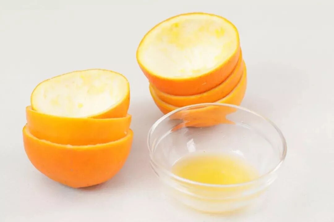 2、六个掏空的橙皮碗和20g橙汁。