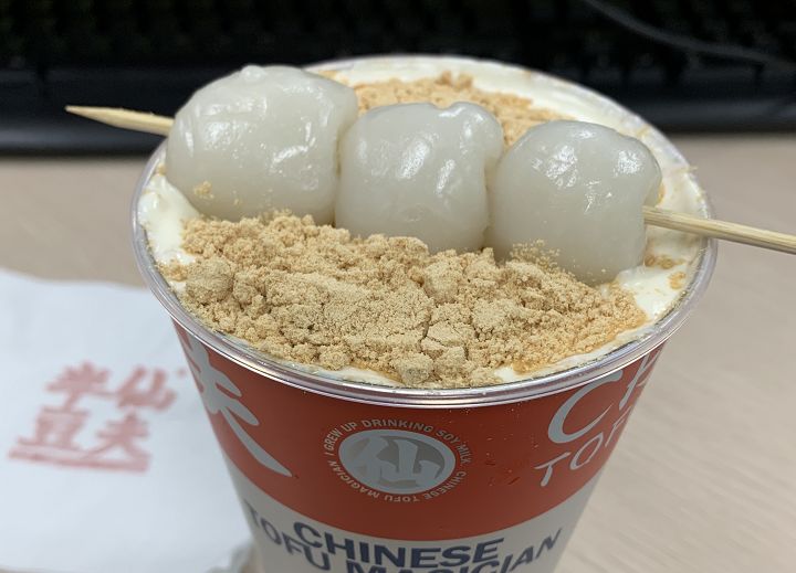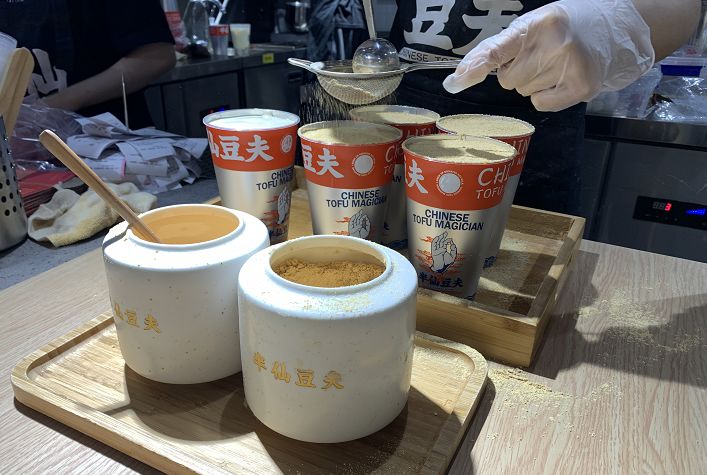“煎饼、拉肠、加杯豆浆!唔该老世!”