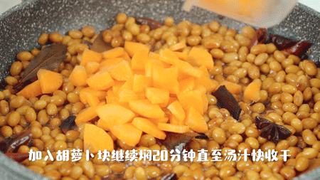 5. 加入胡萝卜块搅拌均匀后,继续焖20分钟直至汤汁快收干
