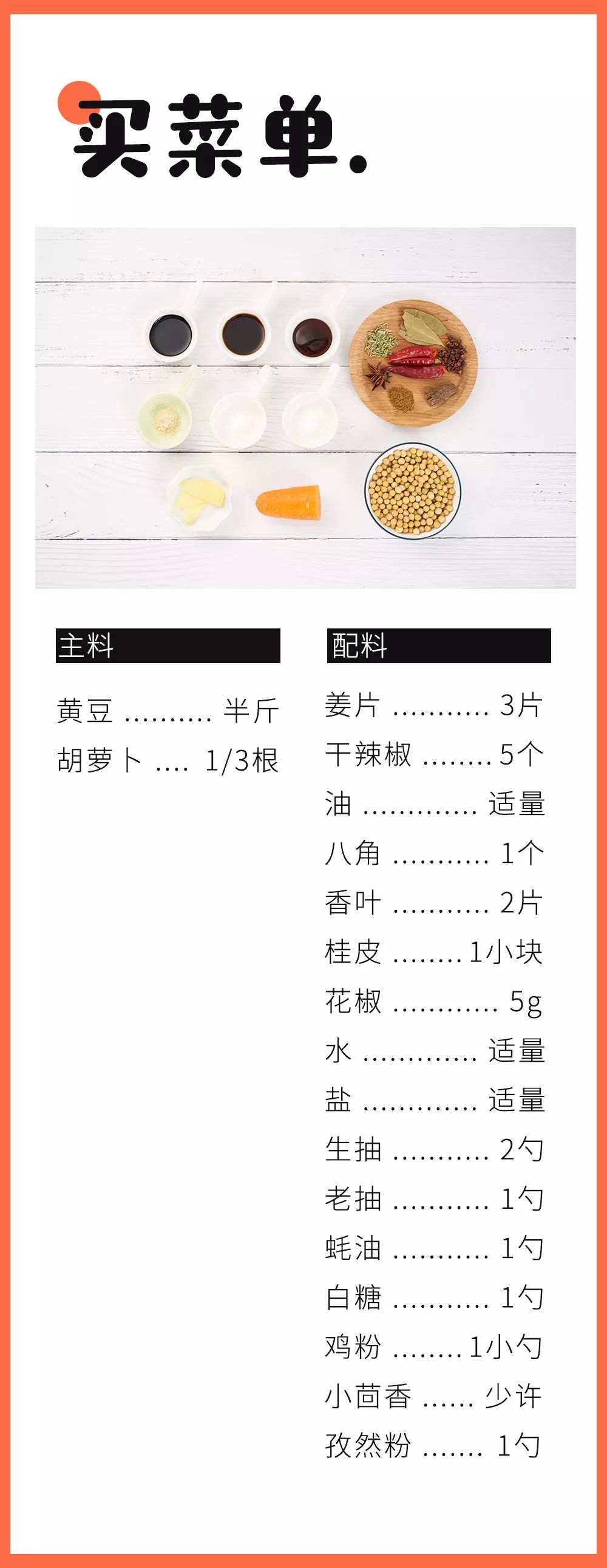 制作酱香黄豆也不是什么大工程,泡豆、炒香料、炖煮,3步即可到位。相信厨房小白也能游刃有余。