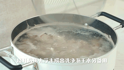 2. 排骨洗净冷水下锅,大火烧开撇去浮沫,捞出后用清水洗净