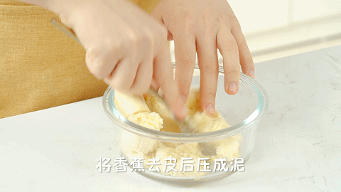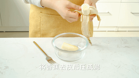 酥皮我是用超市买的冷冻蛋挞皮,内馅是用勺子将香蕉压成泥状,为了丰富口感和味道,我还加了芝士碎进去,宝宝们也可以加上蔓越莓等自己喜欢的食材。