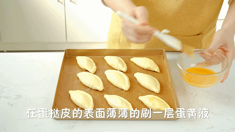 5、放入烤盘中,薄薄的刷一层蛋黄液