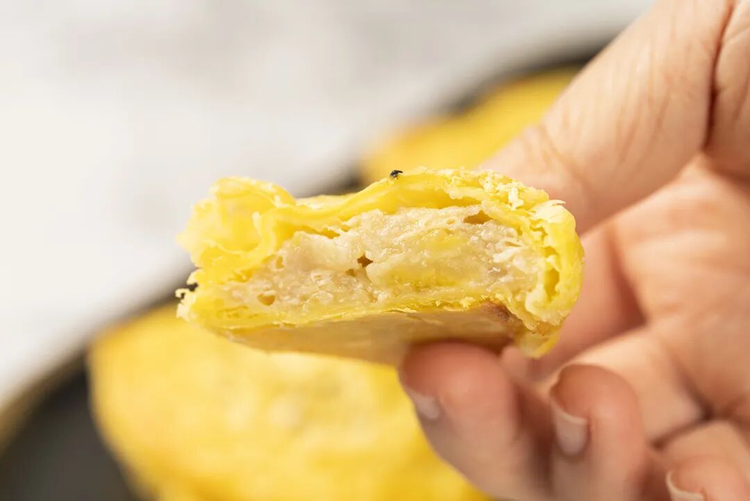 在我看来,蛋挞的终极武器,是它那松脆的酥皮,至于加了淡奶油和炼乳的蛋挞内馅,总觉得有一丢丢油腻。