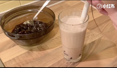 2.用冰冻的珍珠,加黑糖熬煮。