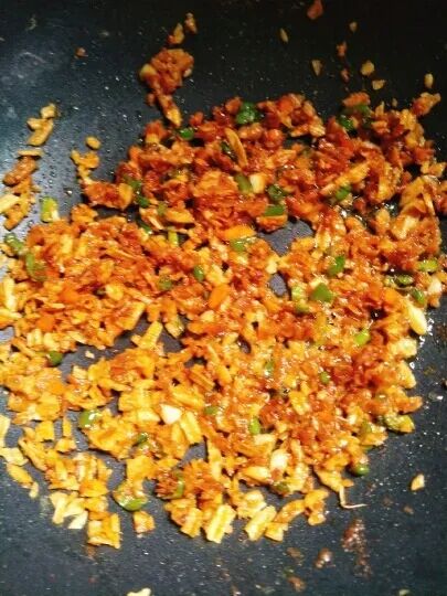 煎饼酱料:豆瓣酱炒出红油,加入甜面酱和白砂糖,搅拌均匀即可!