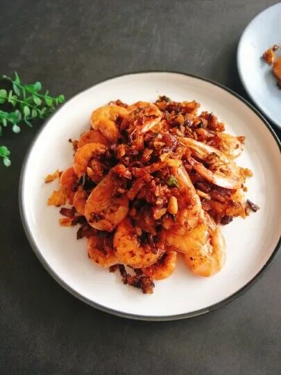 5.倒入虾。因为薯片有味道,只需要加点蚝油即可。