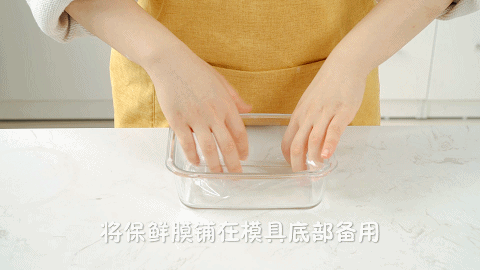 1、将保鲜膜铺在模具底部备用