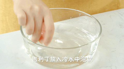 2、将10克吉利丁片放入40克冷水中泡软备用