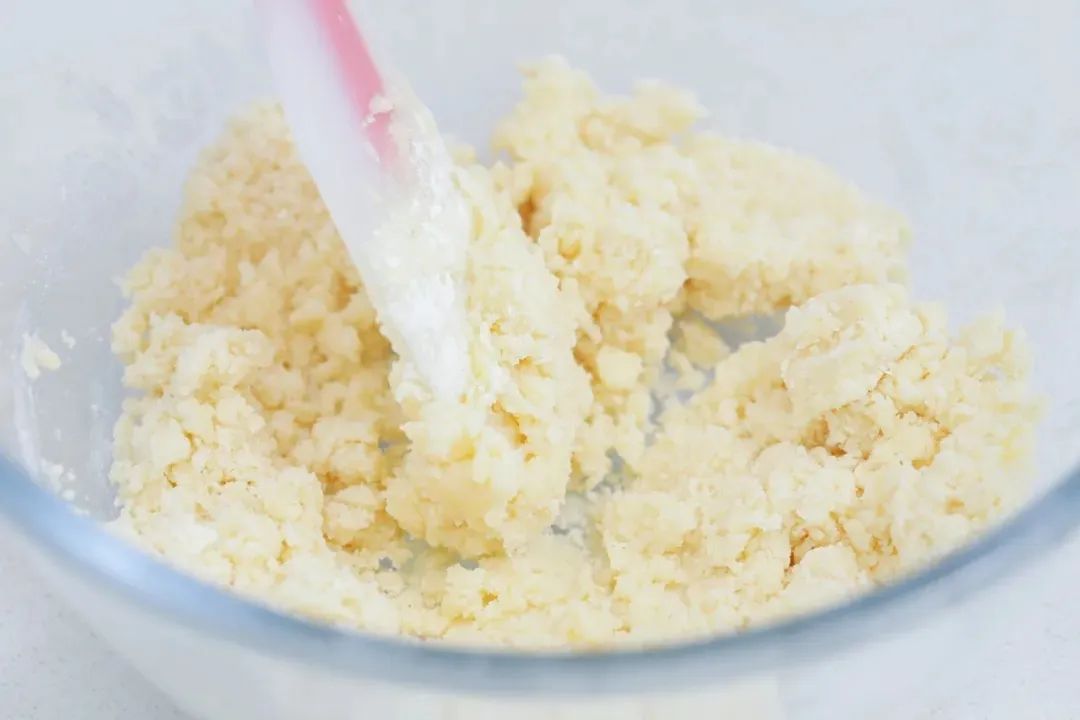 7、快速抓捏成团,不要过度抓捏,否则会影响成品酥松度。