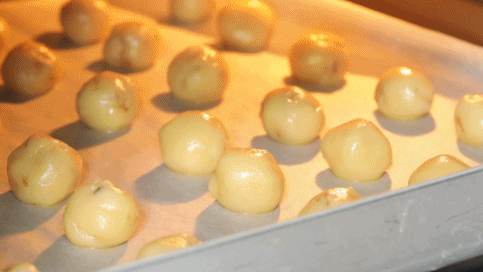 步骤中我解释了雪球酥膨胀的原理,所以如果你的烤箱实际温度偏低,就可能导致饼干不会膨胀定型,而是瘫软下去。因为每个人烤箱都不一样,所以你有可能需要根据自己实际情况灵活调整温度时间。