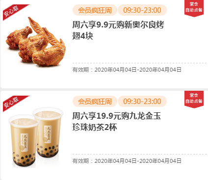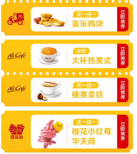 麦乐鸡块、樱花小红莓华夫筒买一送一