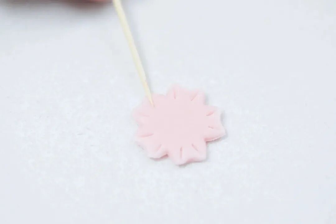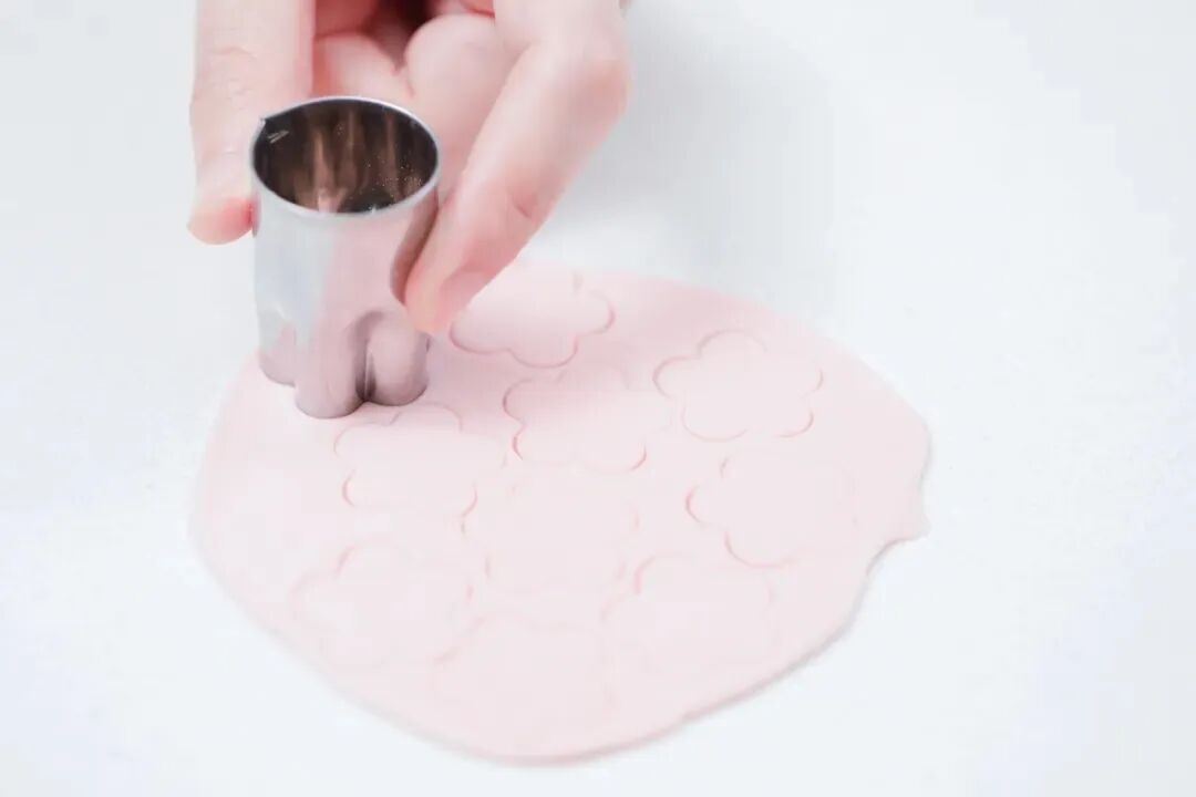 16、再利用切模的圆角,切掉花朵的圆角,就呈现樱花造型了。