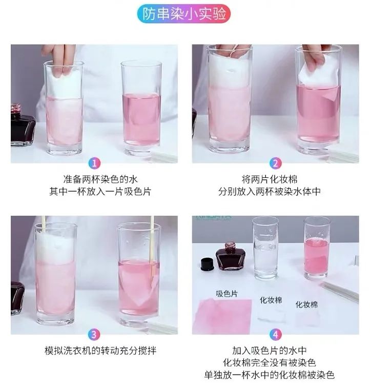 有了它,洗衣服时随手丢两片进去,就能防止衣服串色啦,很方便。