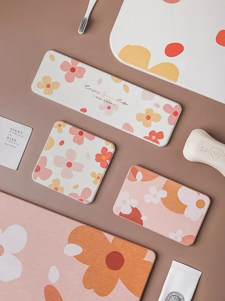 每次洗漱后,浴室和洗脸盆就像被水淹了一样。几天不擦,就出现水渍,甚至是霉斑。吸水小能手硅藻泥垫了解一下?