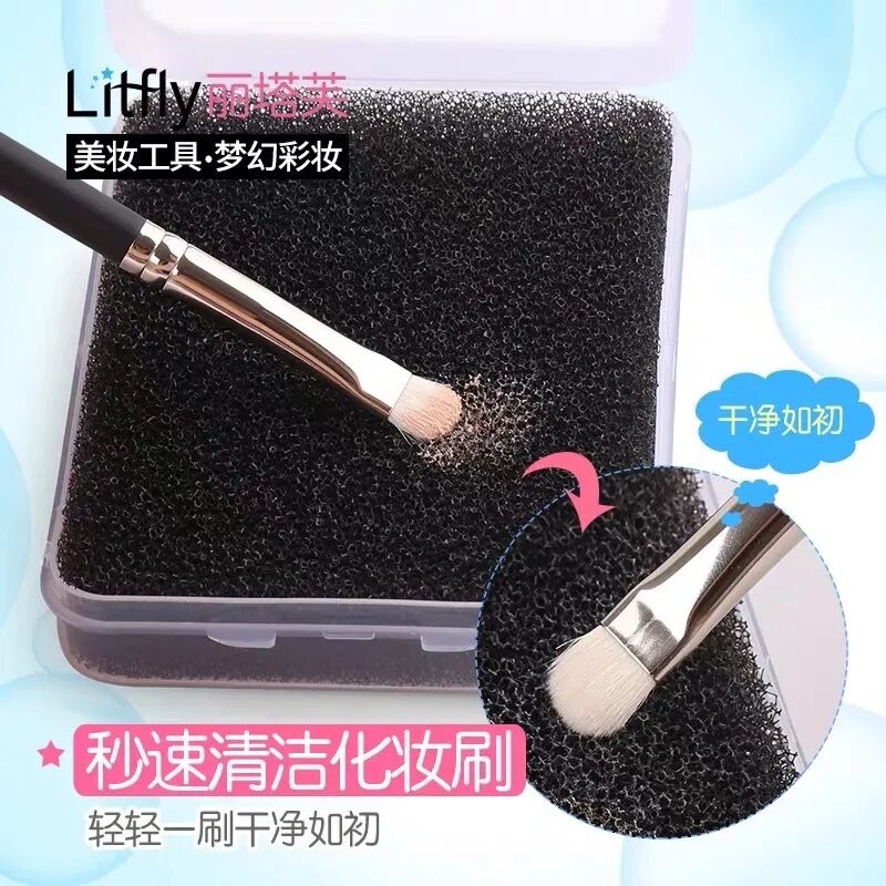 化不同色眼影时容易串色,眼妆看起来总是脏脏的。一块干洗海绵就能解决问题,把刷子在干洗海绵蹭一蹭,立马变干净。