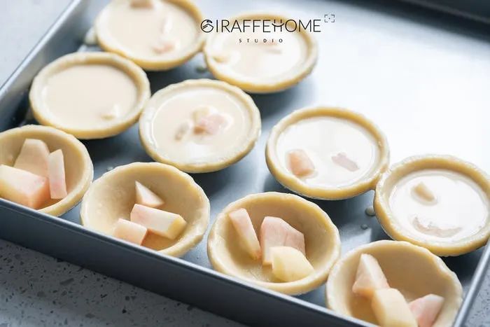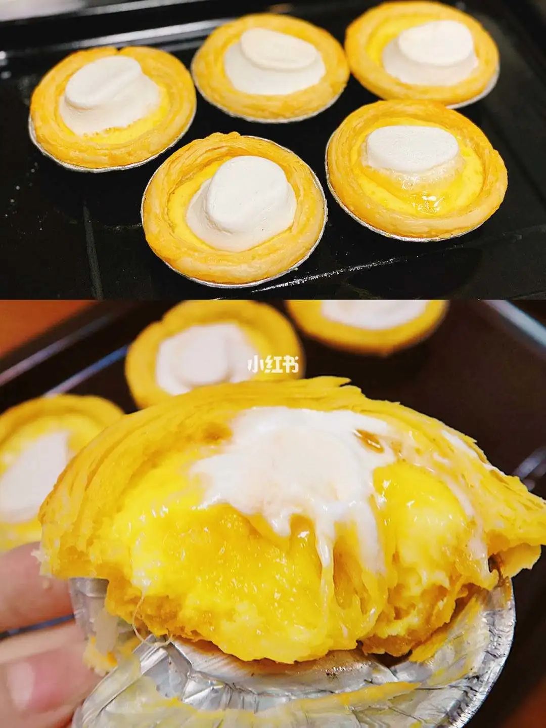 1.蛋挞皮放入预热好的烤箱180度20分钟。