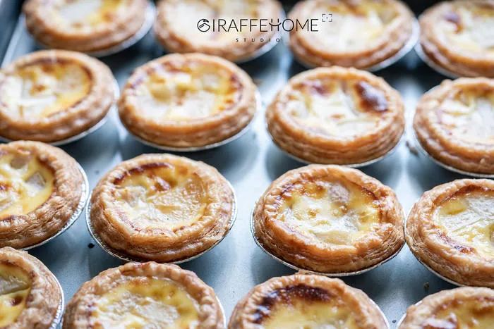 4.将蛋挞液倒入蛋挞中,烤箱200度上下烤20分钟。