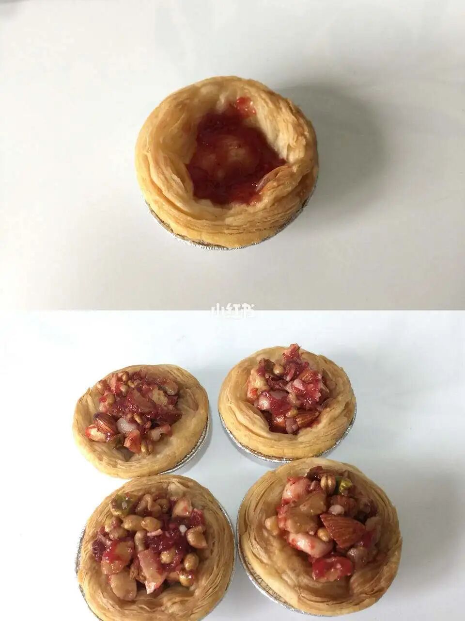 小号蛋挞皮9个、坚果2包、草莓酱适量、椰蓉适量