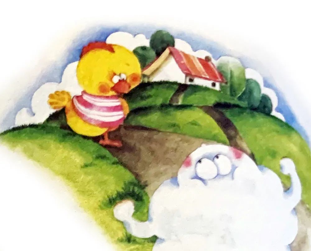 在一座农家院落里,生活着母鸡一家。其中有一只小公鸡十分引人注目,他只有一个翅膀和一条腿,也就是说它是半只鸡。