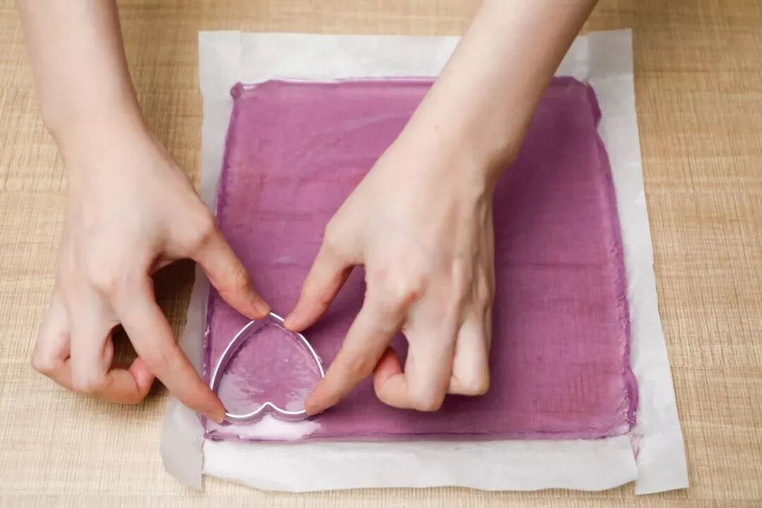 7、冷藏后的糖块用模具压出自己想要的形状,糖块的厚度大约在0.8cm-1cm左右。