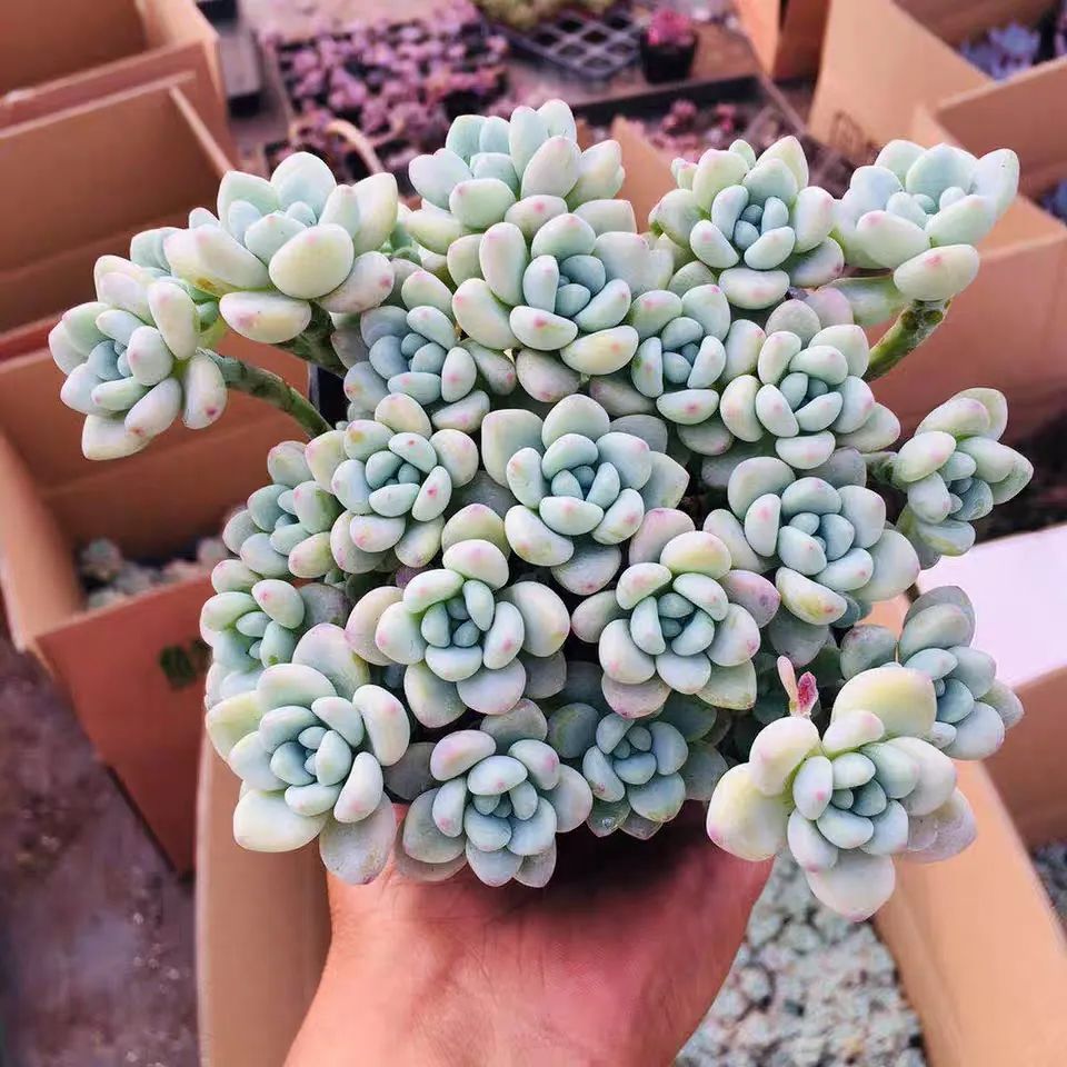 白牡丹是橘子君养的第一棵多肉,它颜值高,耐旱耐晒,可以直接用叶子来插芊,很快发芽~