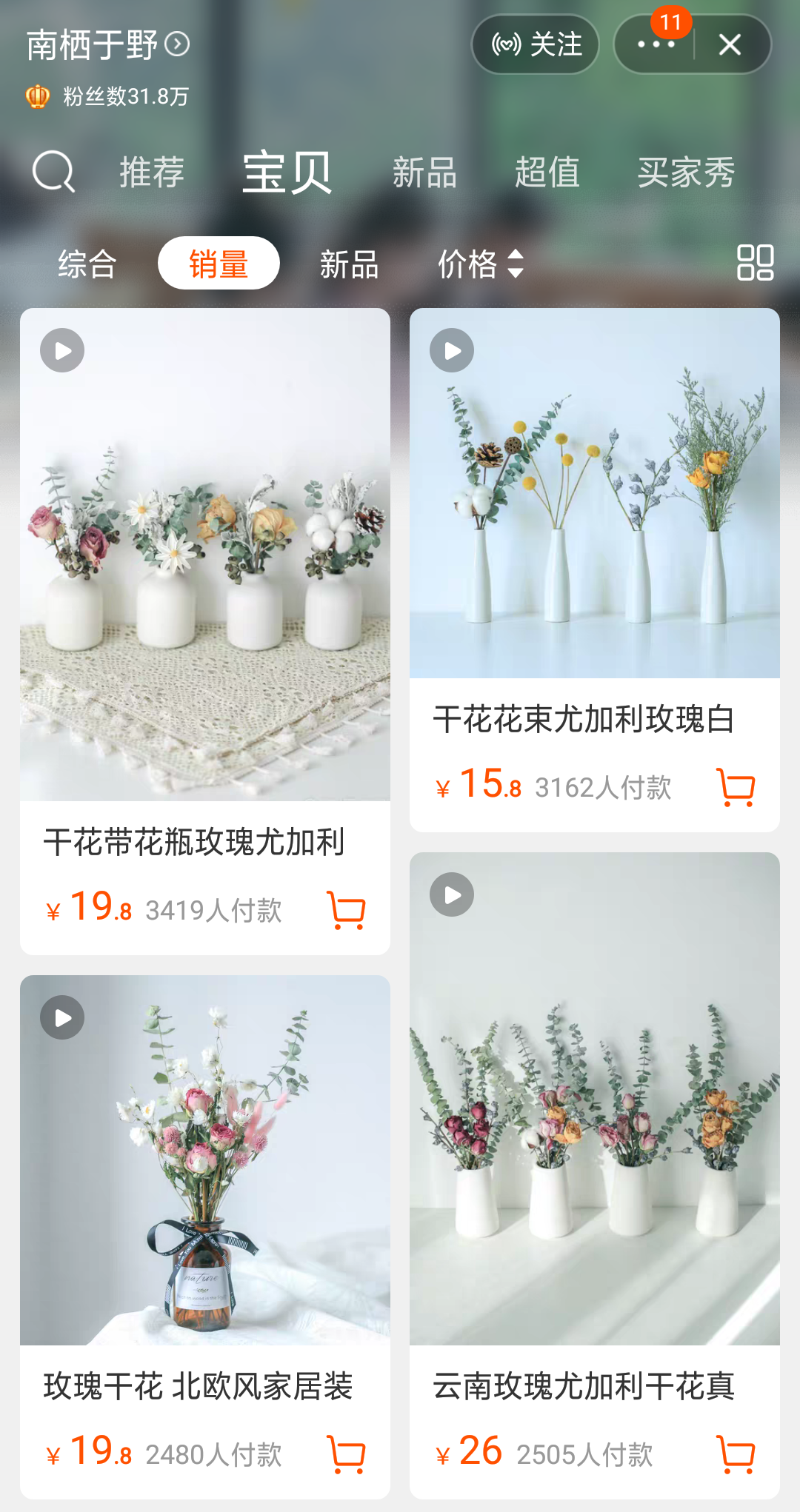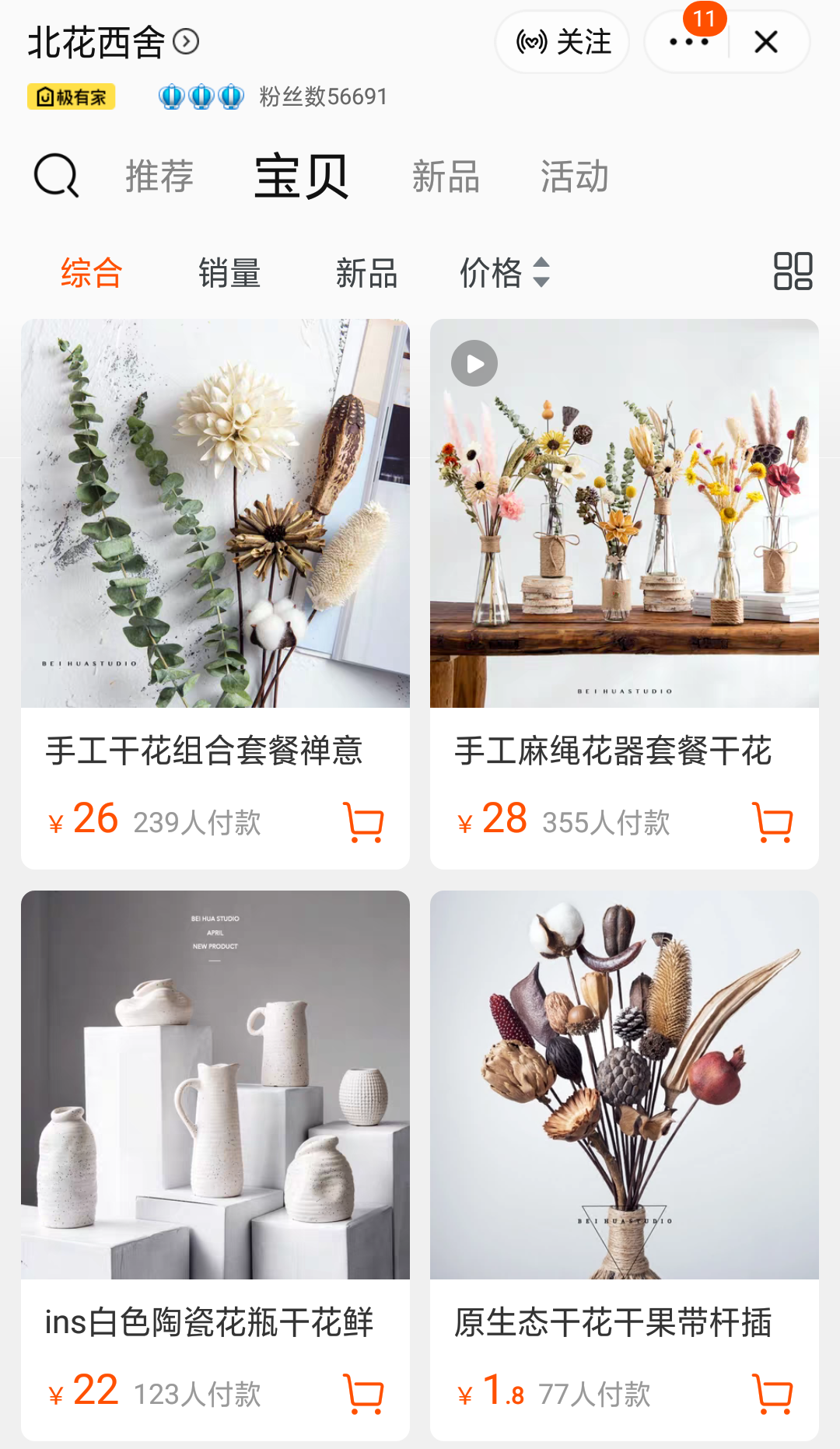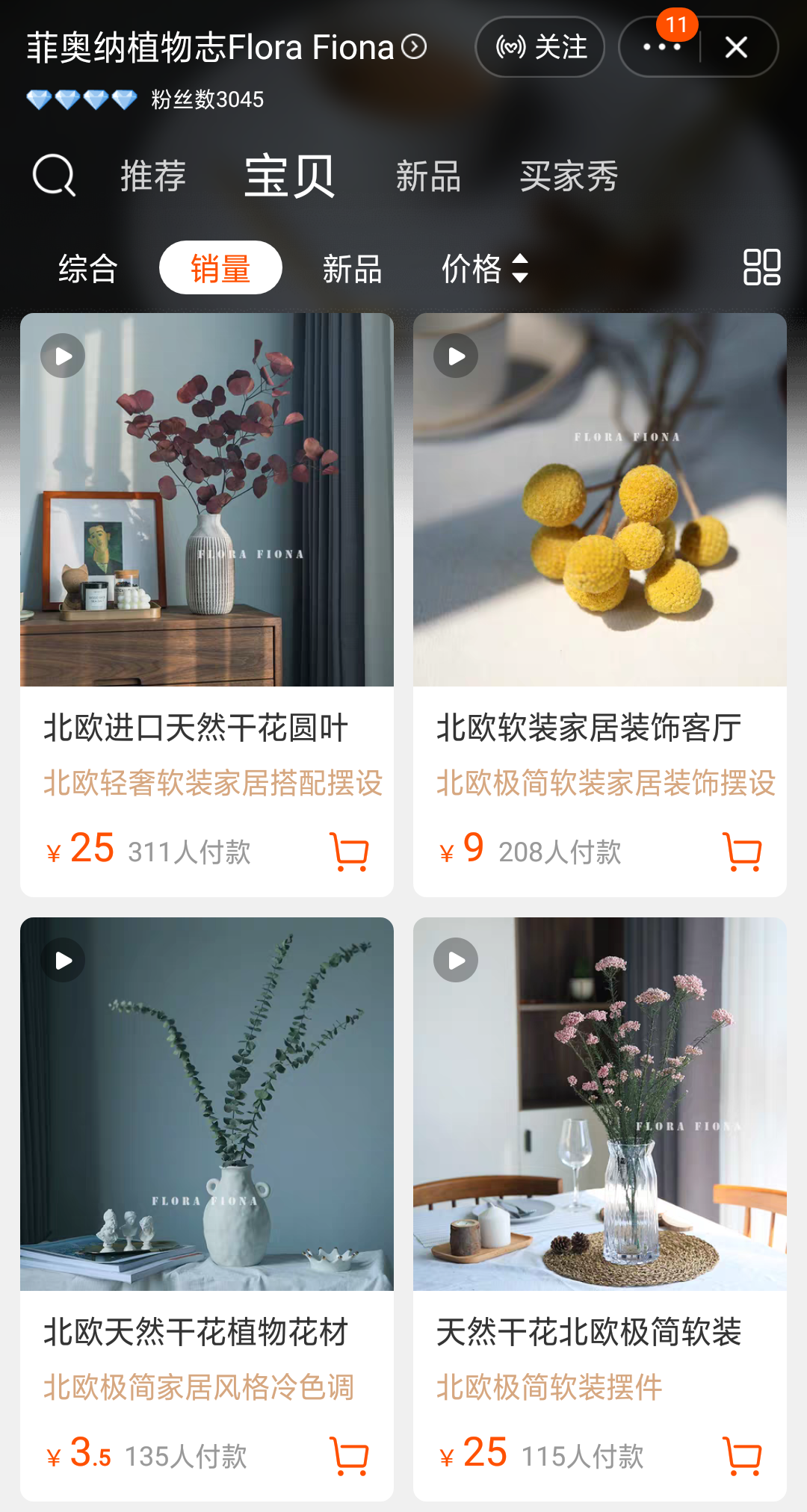 这家以北欧风格的干花为主,如果你家是极简风或轻奢风的装修,都能在这家找到适合的干花。